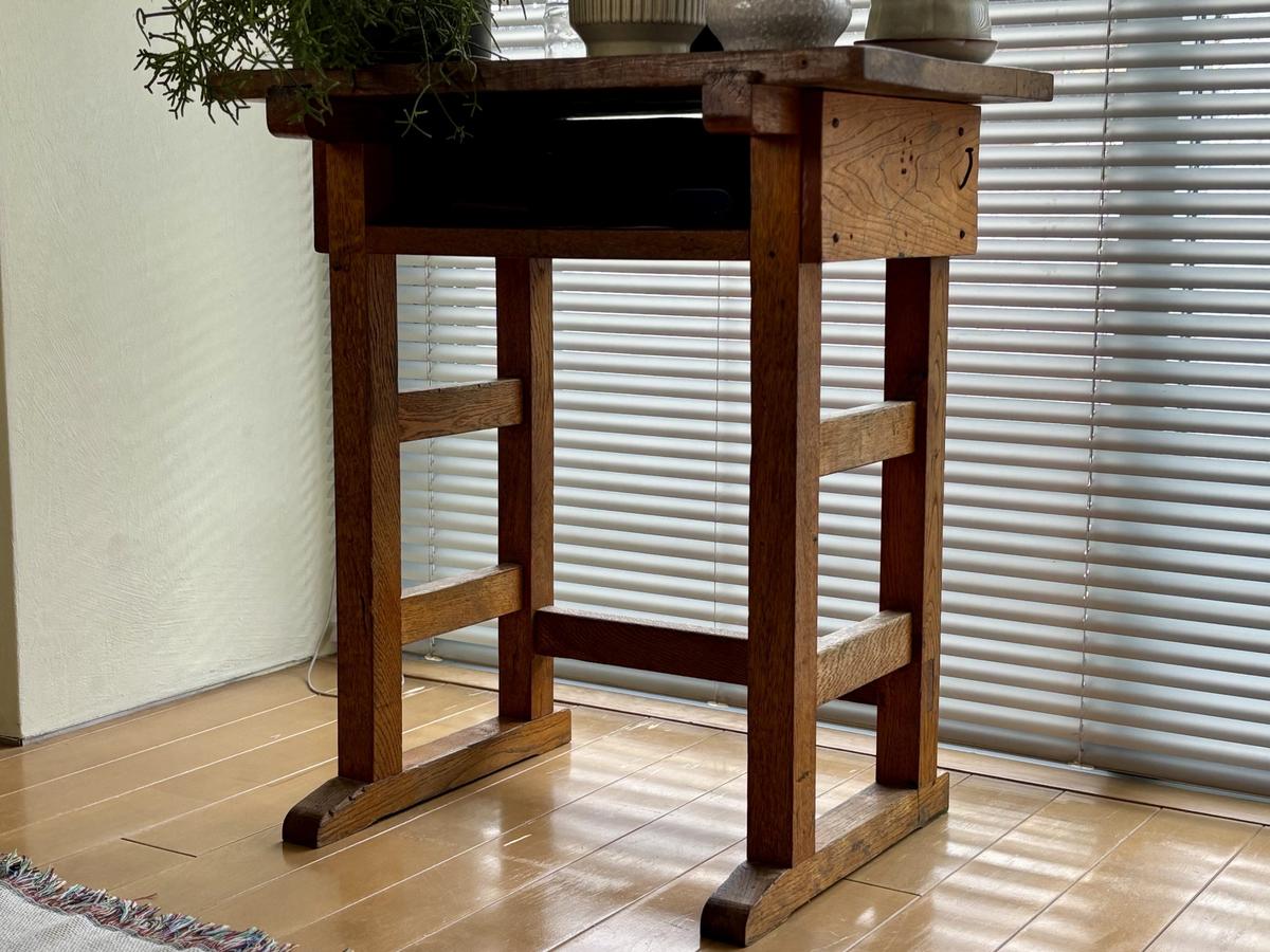 今では窓辺に置いて、植物の飾り棚として活用しています。植物の受け皿から水がこぼれると、天板に跡がつきますが、それもご愛嬌。経年変化を楽しんでいきたいです。