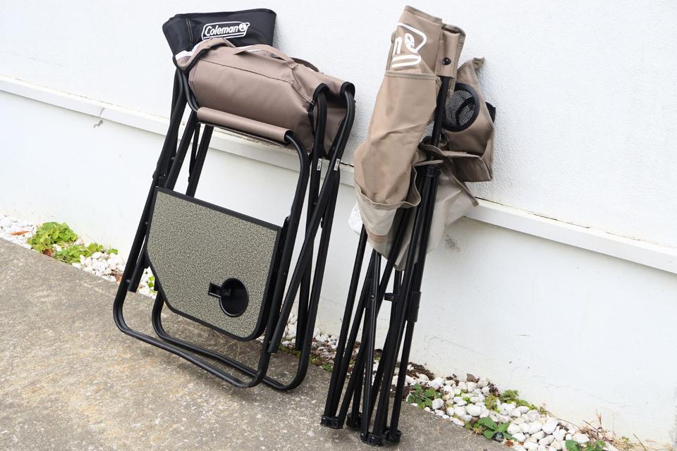 「サイドテーブル付き デッキチェア」は5.5kg、「カップホルダー付き リゾートチェア」3.2kgと重量感あり。でもその分、風で倒れたりはしなさそうな頼りがいを感じます!