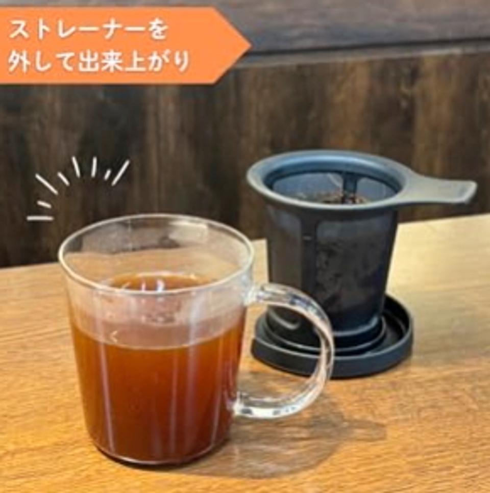 抽出後は、フタがストレーナー置きになるため、置き場に困らずデスク周りを汚しません。また、カップ・ストレーナー・フタはすべて分解して洗えるので衛生的。電子レンジ・食洗機対応(ストレーナーを除く)で、日常使いにも最適です。