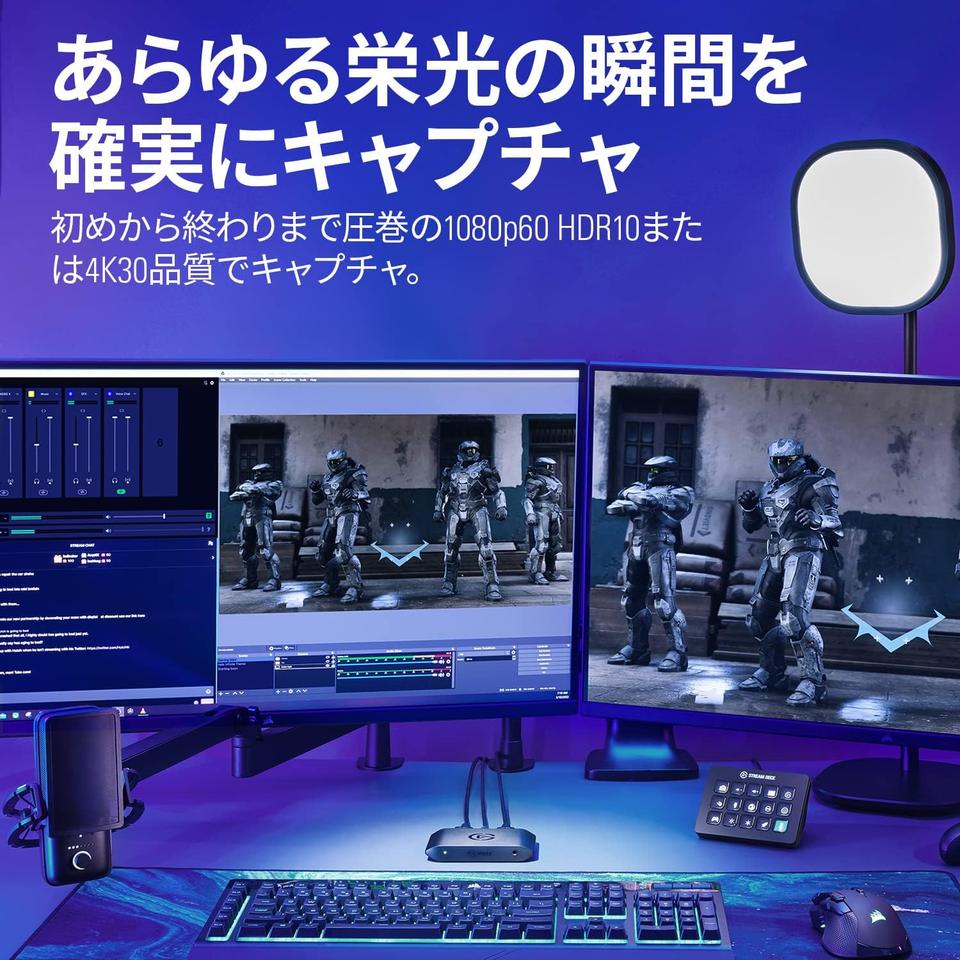 「Game Capture HD60 X」の最大の特長は、最高4K60 HDR10のパススルー。PS5やXbox といったゲーム機の映像を、遅延を感じさせない状態で出力でき、プレイ体験を犠牲にすることなく実況や録画が可能です。