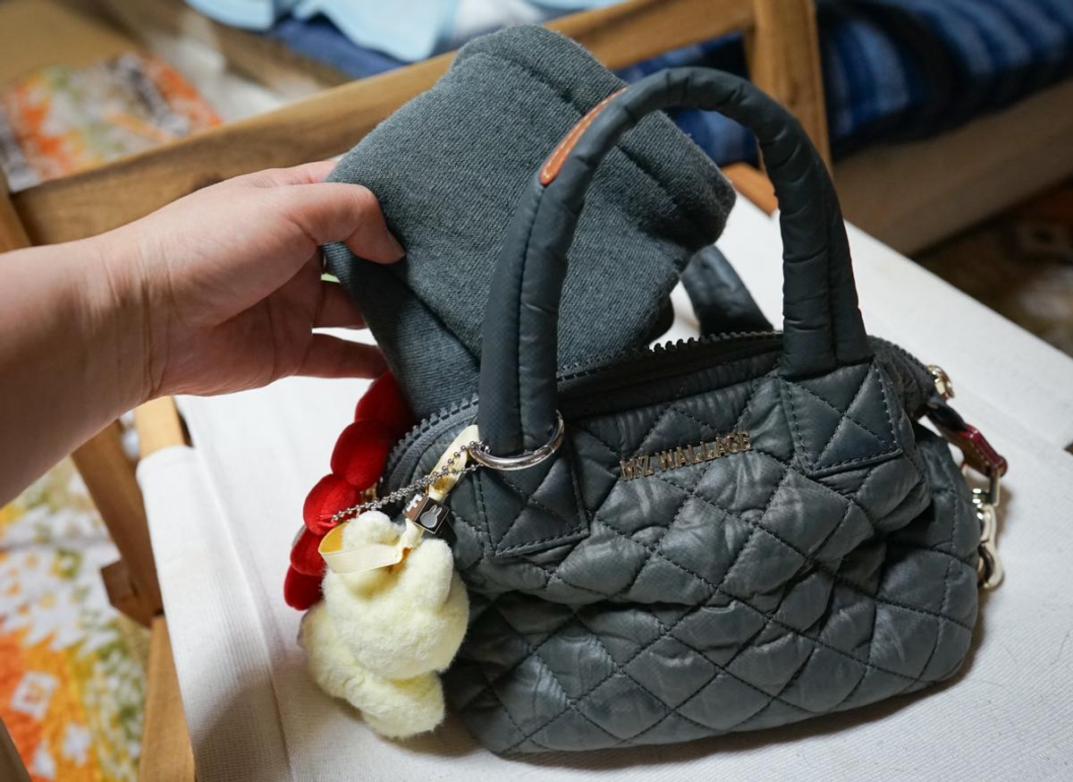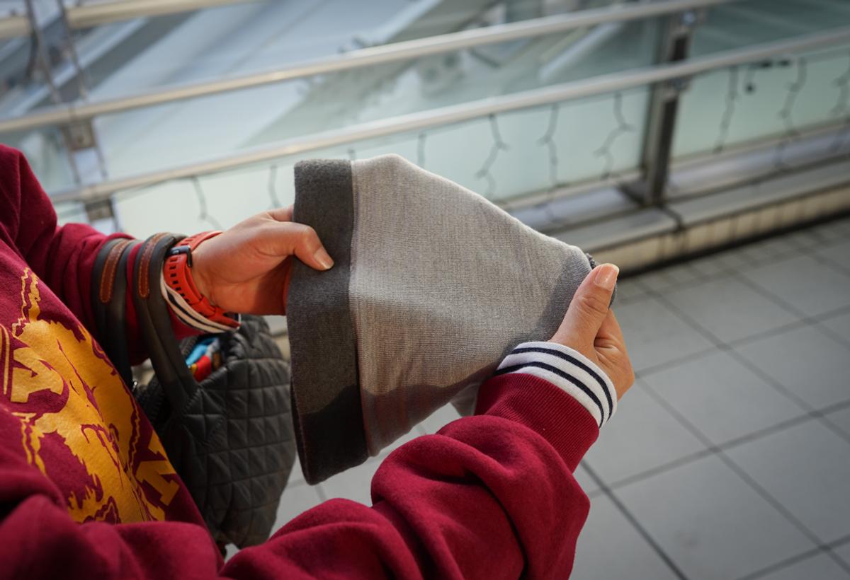 小さく折り畳んでバッグに入れてもシワになりにくく、装着も簡単。嵩張らないので旅行の時にも持ち運びしやすい点も◎。