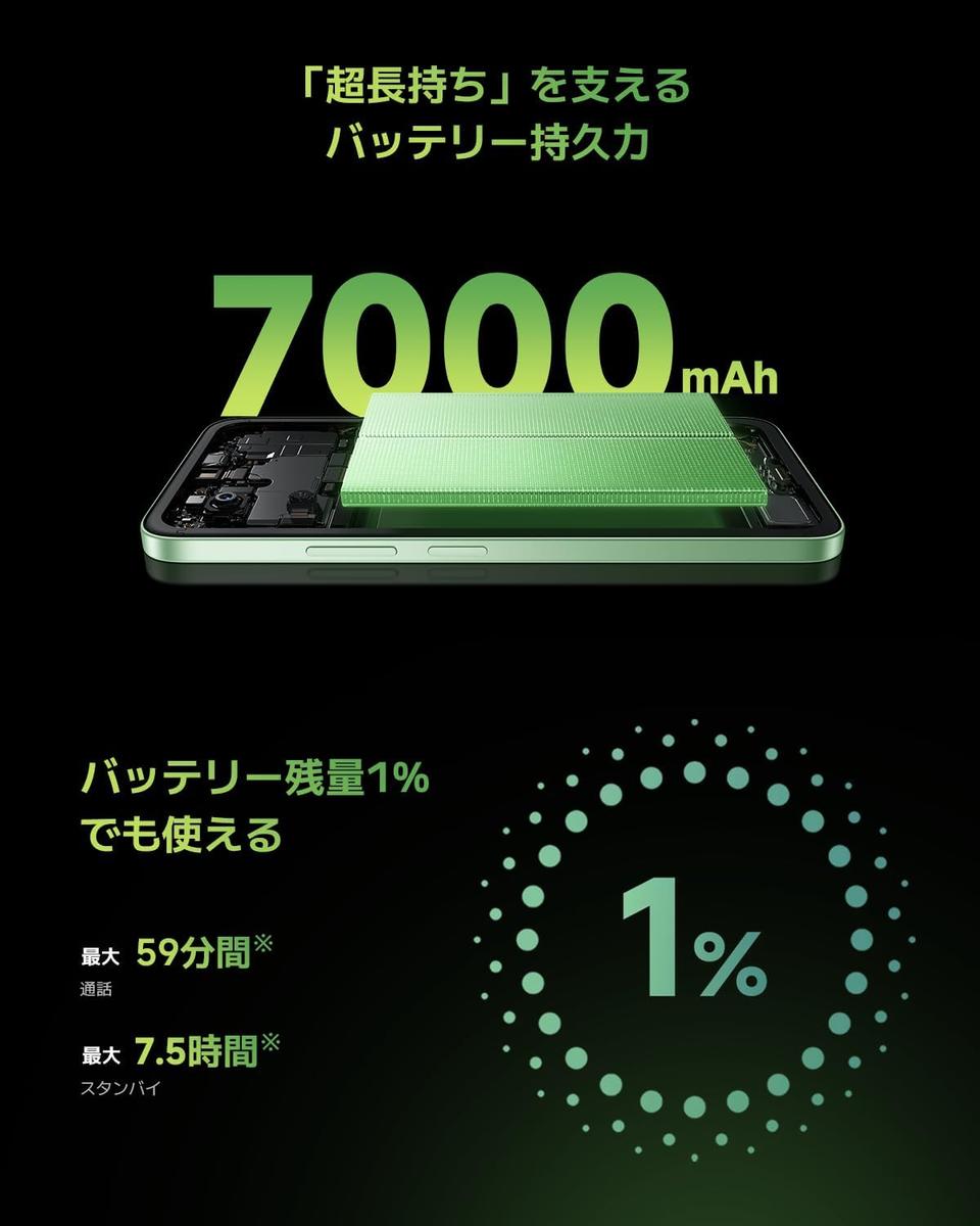 7,000mAhバッテリーによる圧倒的なスタミナ性能が魅力の同機。先進技術を採用することで、 かつてないほどの非常に長いバッテリー持続時間を実現し、バッテリー残量がわずか1%まで低下しても、スタンバイモードのままで通話の発信と受信が可能です。