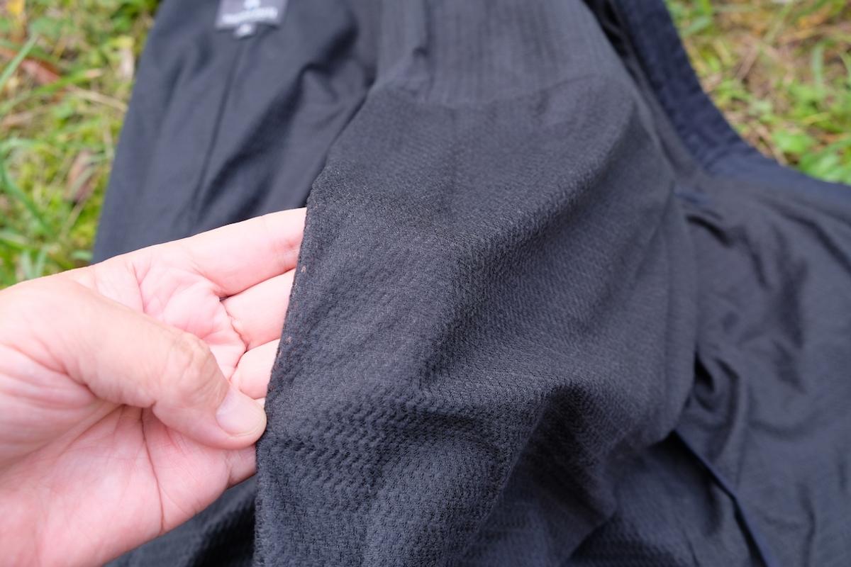動きやすさを考慮して、中綿(キルティング)ではなく、薄くて暖かいライニング