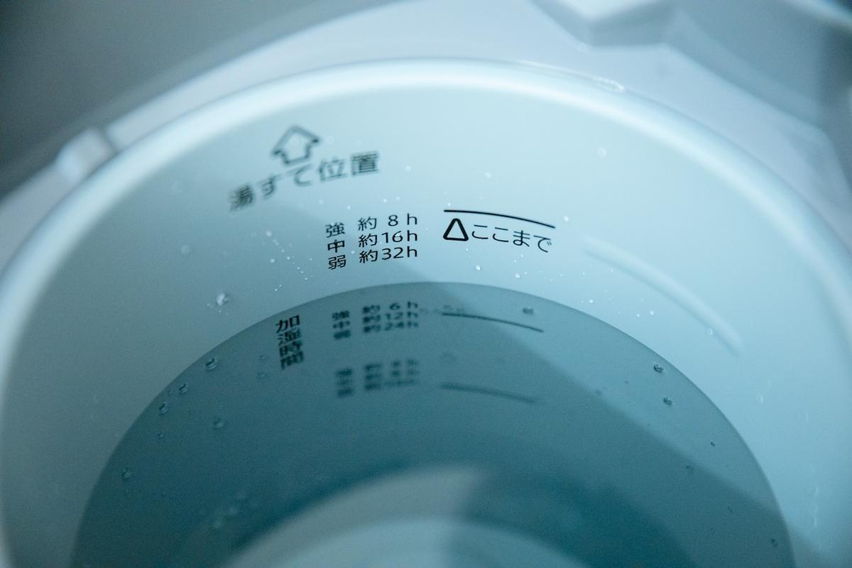 フタを開けるとこんな感じ。水位線があることで加湿時間の目安がわかるのもうれしいポイント。