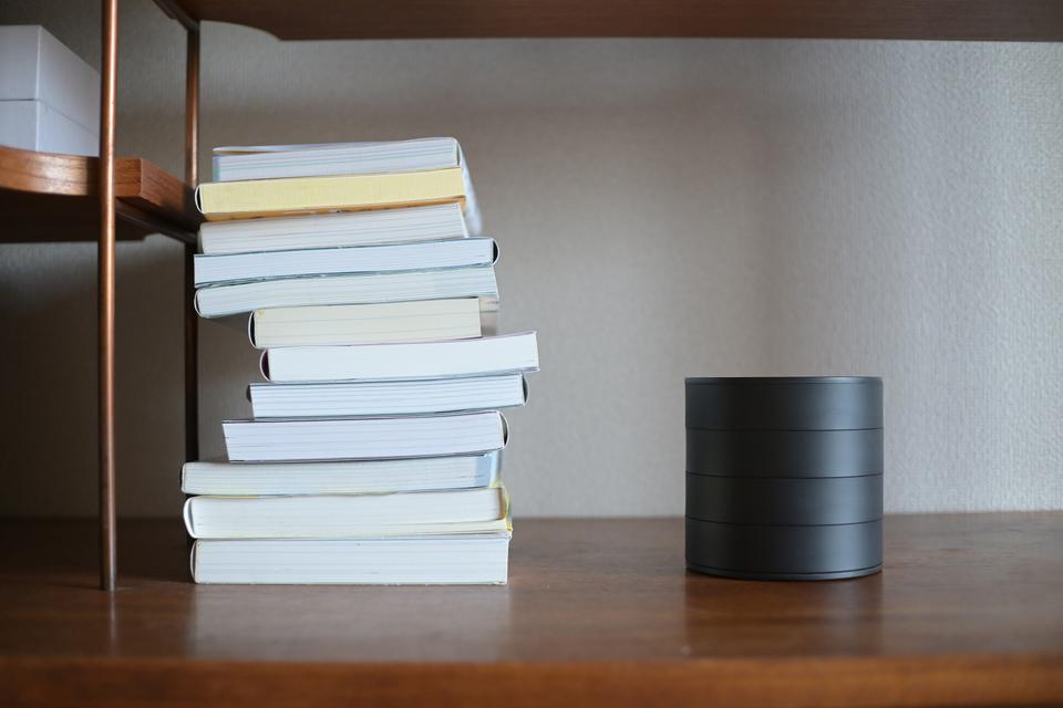実際に棚やデスクに置いてみると、いかにも収納用品という主張がなくて、自然に馴染みます。コンパクトなので、洗面台やベッドサイドテーブルとかに置くのも良さそうです。