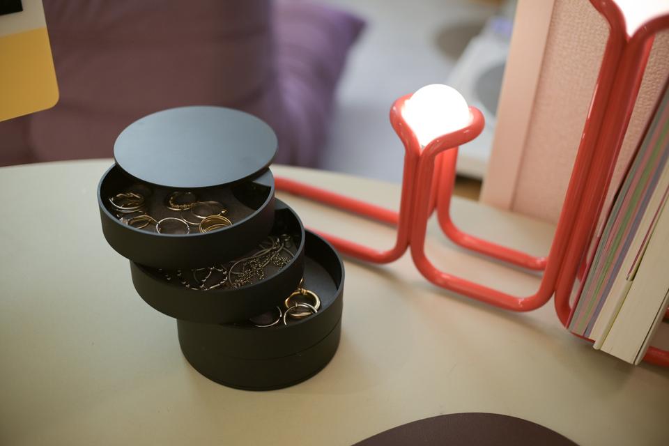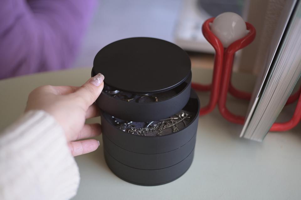 そんな時に見つけたのが、山崎実業の「蓋付き 4 段 アクセサリートレー」。これが、日常使いのアクセサリーをまとめておくのに、絶妙なアイテムだったんです。