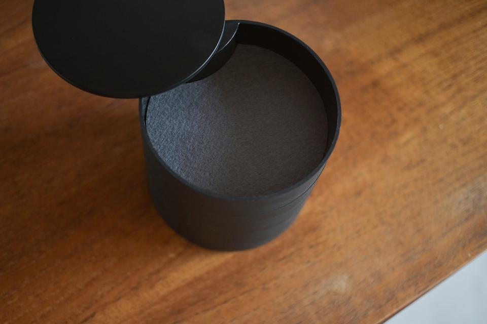 中は、フェルトマットが敷かれただけのシンプル設計。ジュエリーボックスのように、しまう場所が決まっていないから、収納の仕方は自由です。