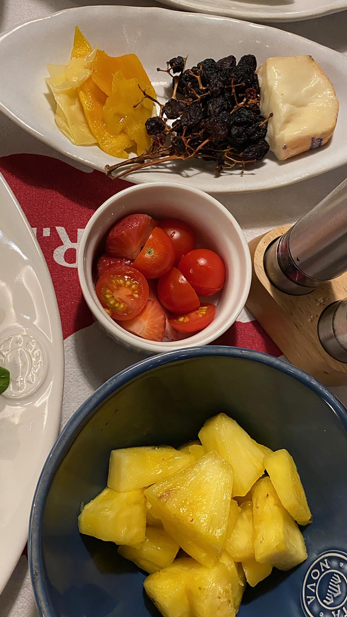 マンゴーとレーズンとタレッジオ(チーズ)、パイナップル、