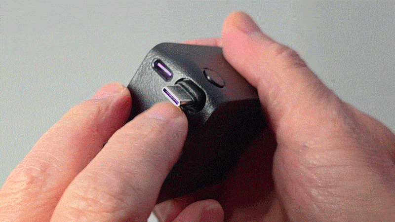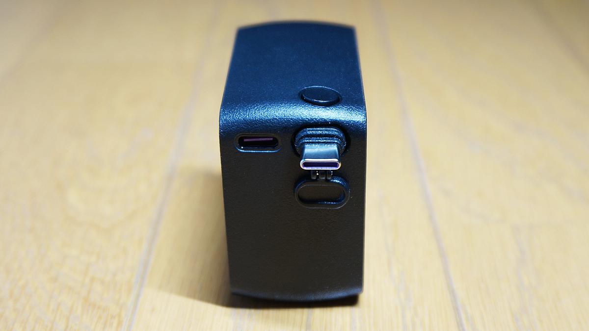 使うときには、本体上部のボタンをカチッと押すと、USB-C端子がポンッと飛び出します。あとはスルスルっとケーブルを引き出すだけ。