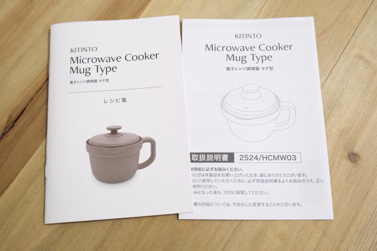 本体のほか、取扱説明書とレシピブックが付属しているので、届いてすぐ使いはじめられます。