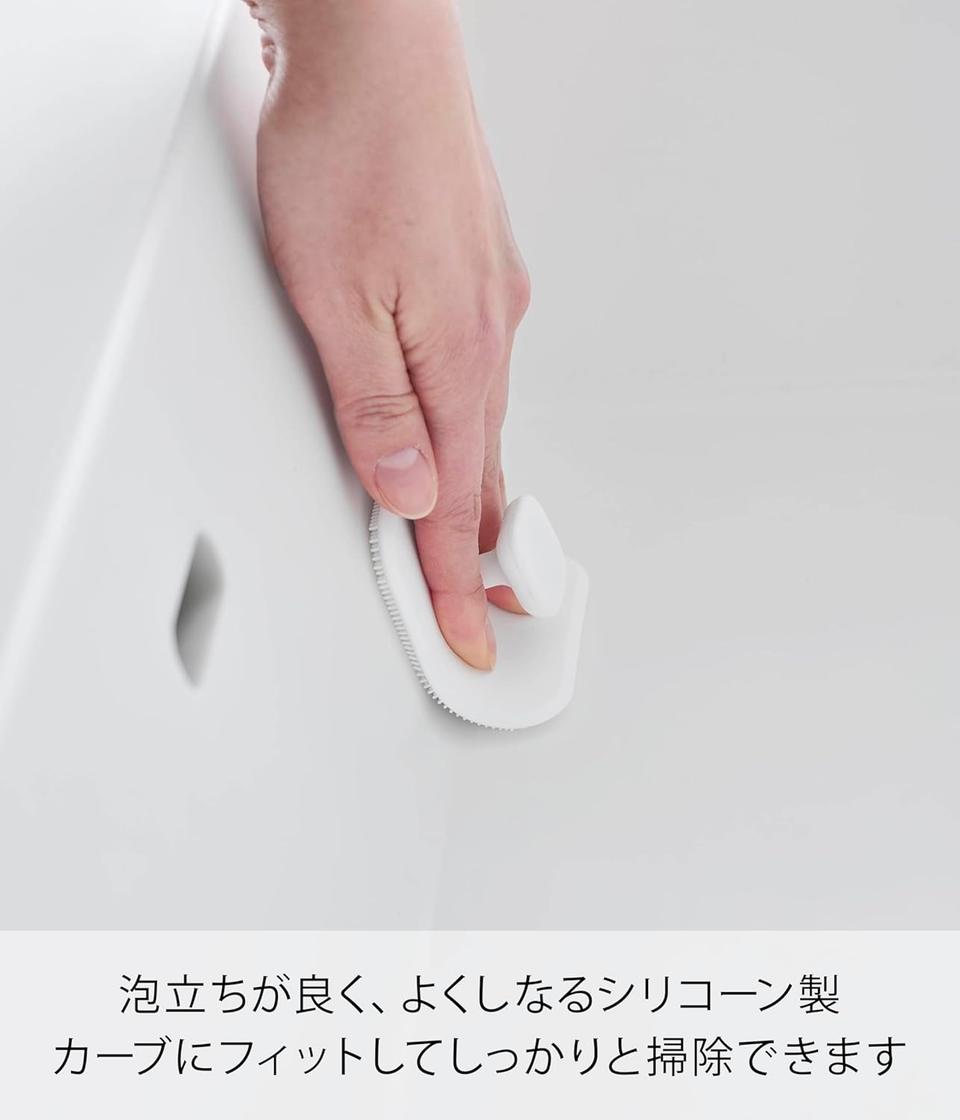 この商品の最大の特徴は、柔らかいシリコーン製であること。洗面台のカーブに沿ってしなやかにフィットするので、今まで掃除しづらかった場所もしっかりキレイにできちゃいます。