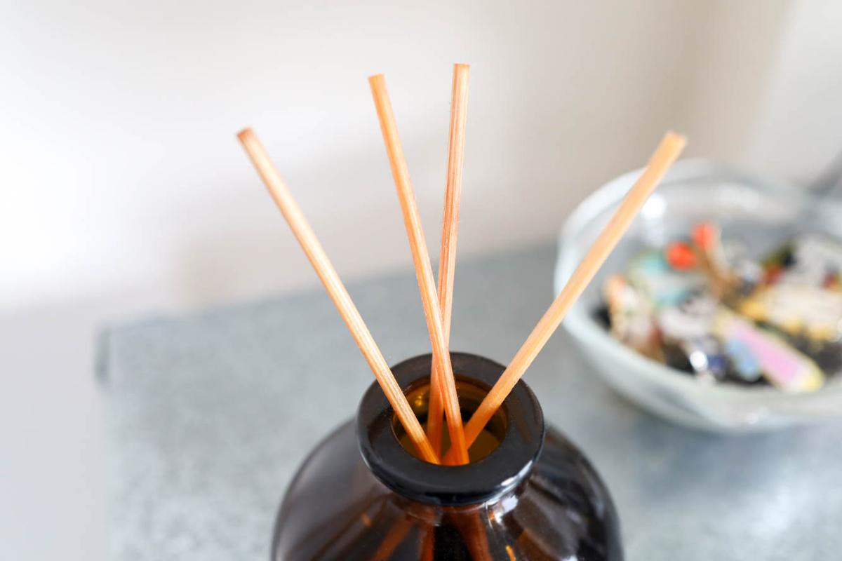 別売りのラタンスティックを挿して使い、本数によって香りの広がりを変えられるのだそう。