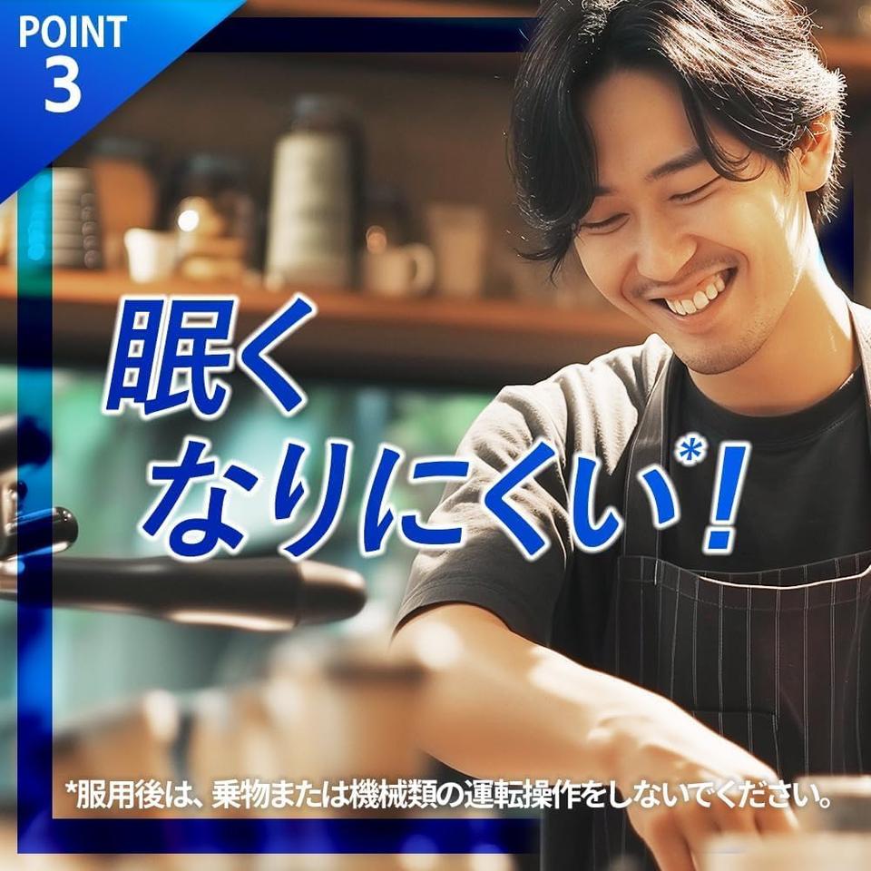 医療用と同じ成分を配合しているから、効き目もバッチリ。しかも「眠くなりにくい」設計なので、日中の活動に影響が少ないのも嬉しいポイント(※服用後は、乗物または機械類の運転操作はしないでください)。