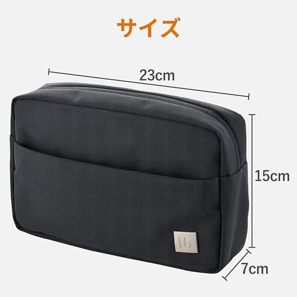 サイズは幅23cm×高さ15cm×厚み7cmとコンパクト。バッグインバッグとしても使いやすく、外出時の必需品をまとめて持ち運べます。