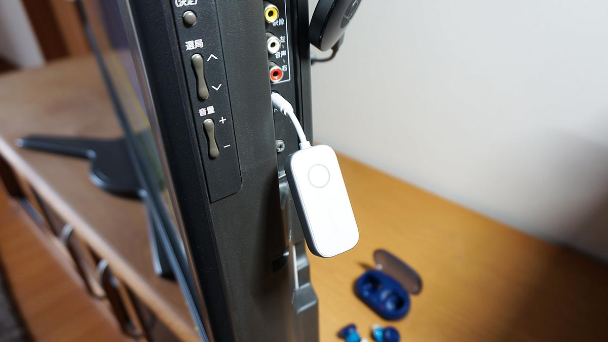 深夜はテレビの音量を下げておかないと、別室で寝ている妻を起こしてしまう心配がありましたが、これさえあればワイヤレスイヤホンで音声を聴けるので問題ありません。