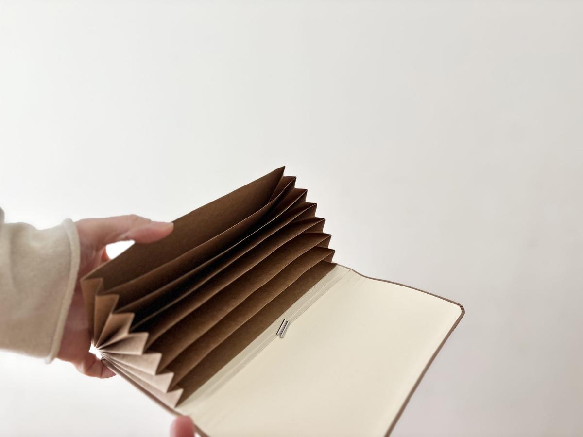 仕事柄、1、2ヶ月くらいでかなりのレシート・領収書の量になりますが、ゴムバンドで留めておけるので、たくさん入れてもまとめておけます。
