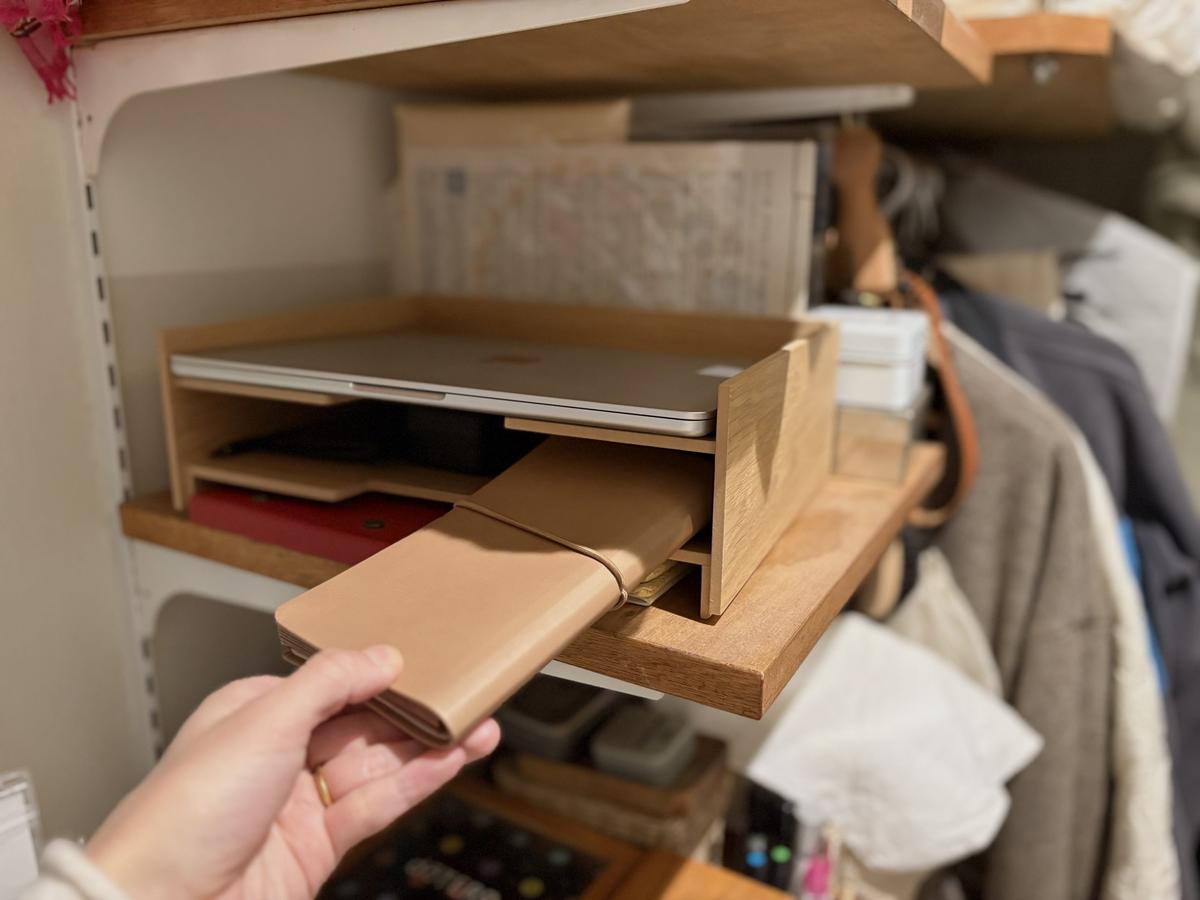 気が付いたらすぐ整理できるよう、ふだんはクローゼットの棚に。