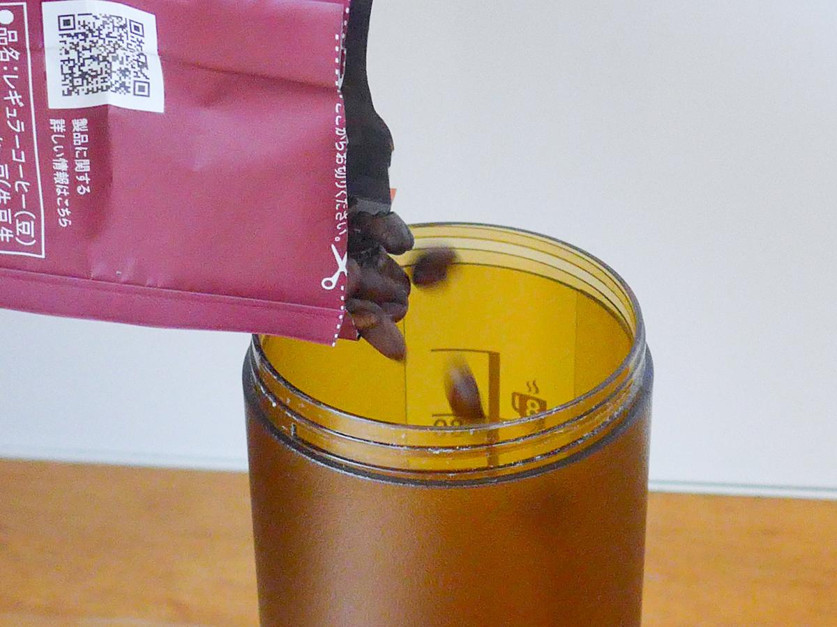 フタを開けてみると、中にコーヒー豆が溜まっていました。