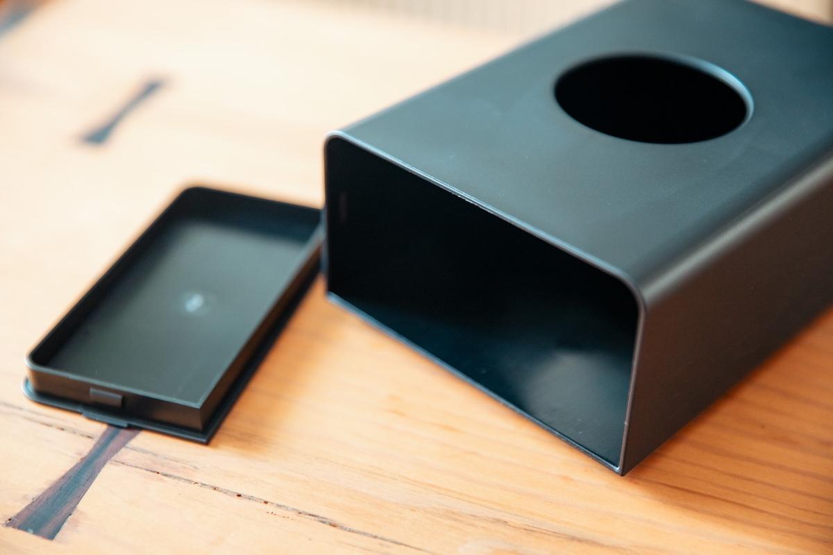 中身を補充するときは上蓋をパカッと開けたらOK。5cmほどの隙間があれば、難なく上蓋は開けられます。