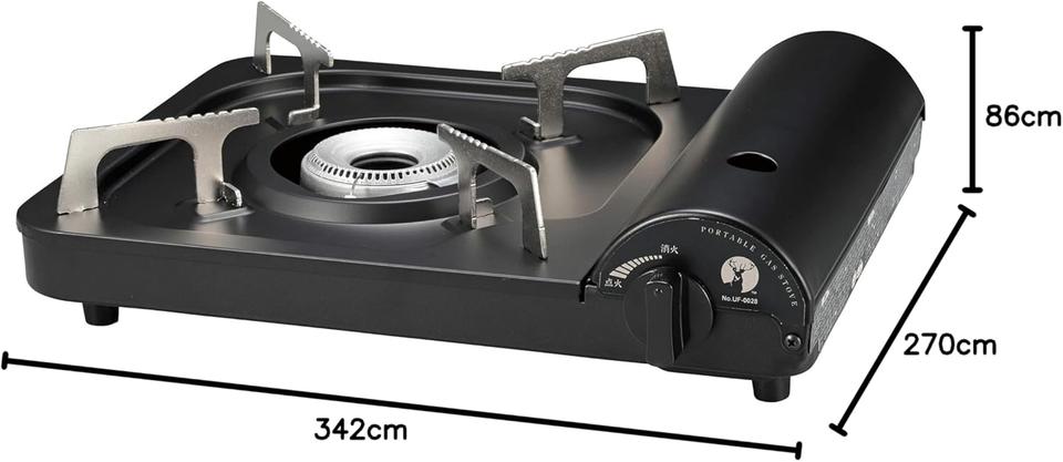 アウトドアブランドの定番、キャプテンスタッグから発売されているこのカセットコンロ、3.5kW(3,000kcal/h)のパワフル火力で、炒め物から煮込み料理まで幅広く対応。幅342×奥行270×高さ86mmのコンパクトサイズながら、家庭用コンロに匹敵する火力を実現しています。