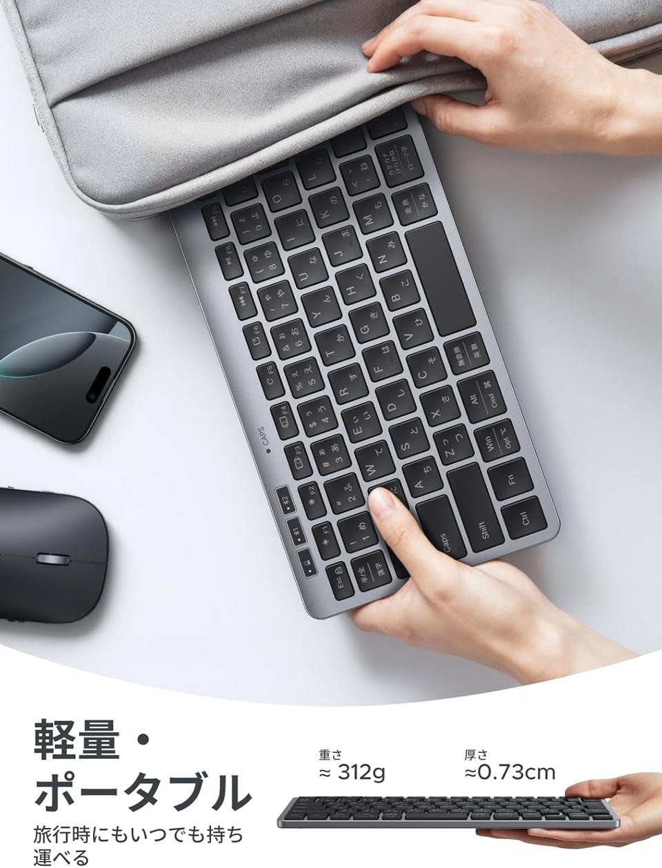 重さはたった約312g、厚さも約0.73cmという超薄型設計。バッグに入れても全然かさばらないから、ノマドワークや出張時にも大活躍間違いなし!