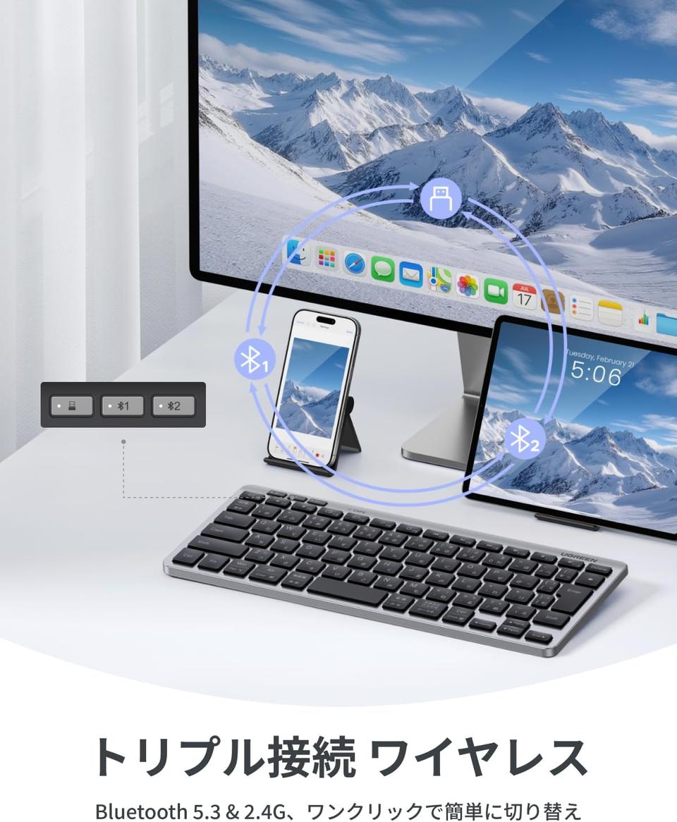 そんな悩みを一発解決してくれるのが、このUGREENの「ワイヤレスキーボード Bluetooth +2.4G」です。