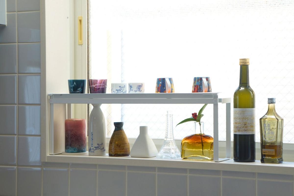早速「コンロ奥隙間ラック」を使って、酒器と花器を並べてみました!シンプルでよい感じ〜。