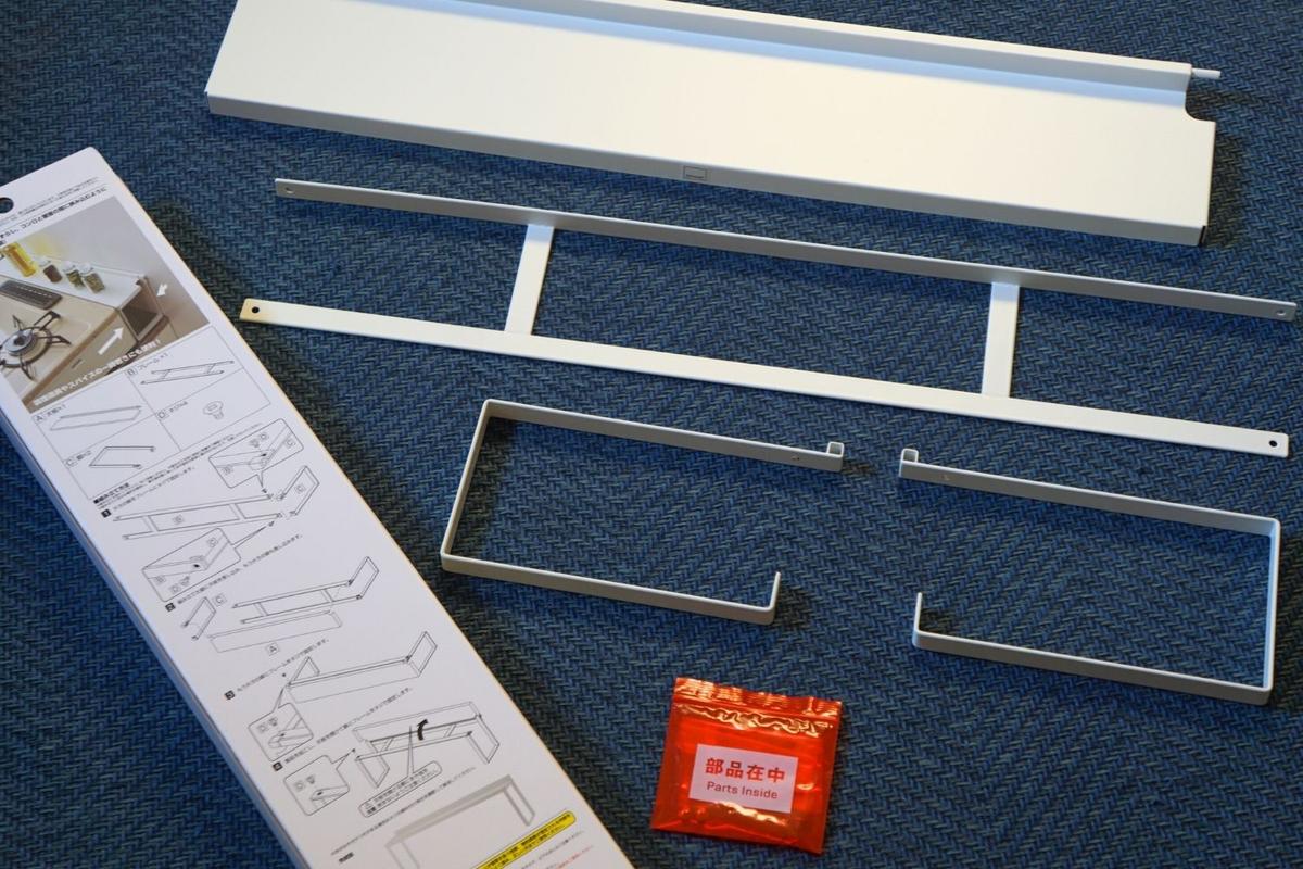 素材はスチール。部品は、棚板と支柱、脚2本と小さいネジのみ。