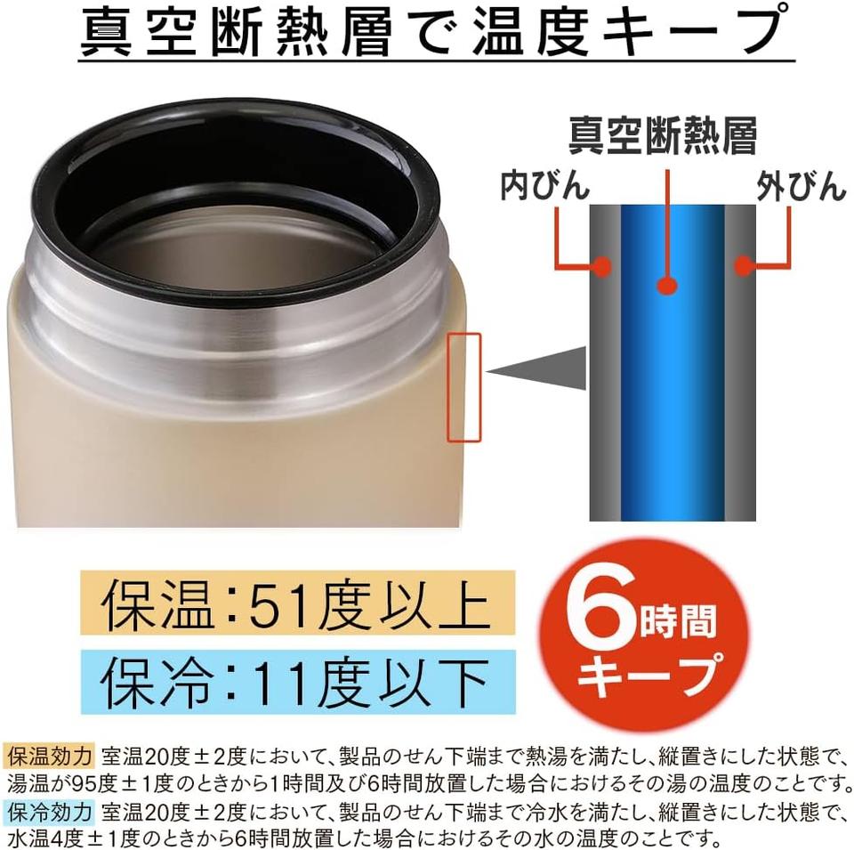 この魔法のようなスープジャー、真空断熱層の構造で保温51度以上、保冷11度以下を6時間もキープできちゃうんです! 朝作った熱々のスープやシチューが、ランチタイムまでしっかり温かいまま楽しめます。