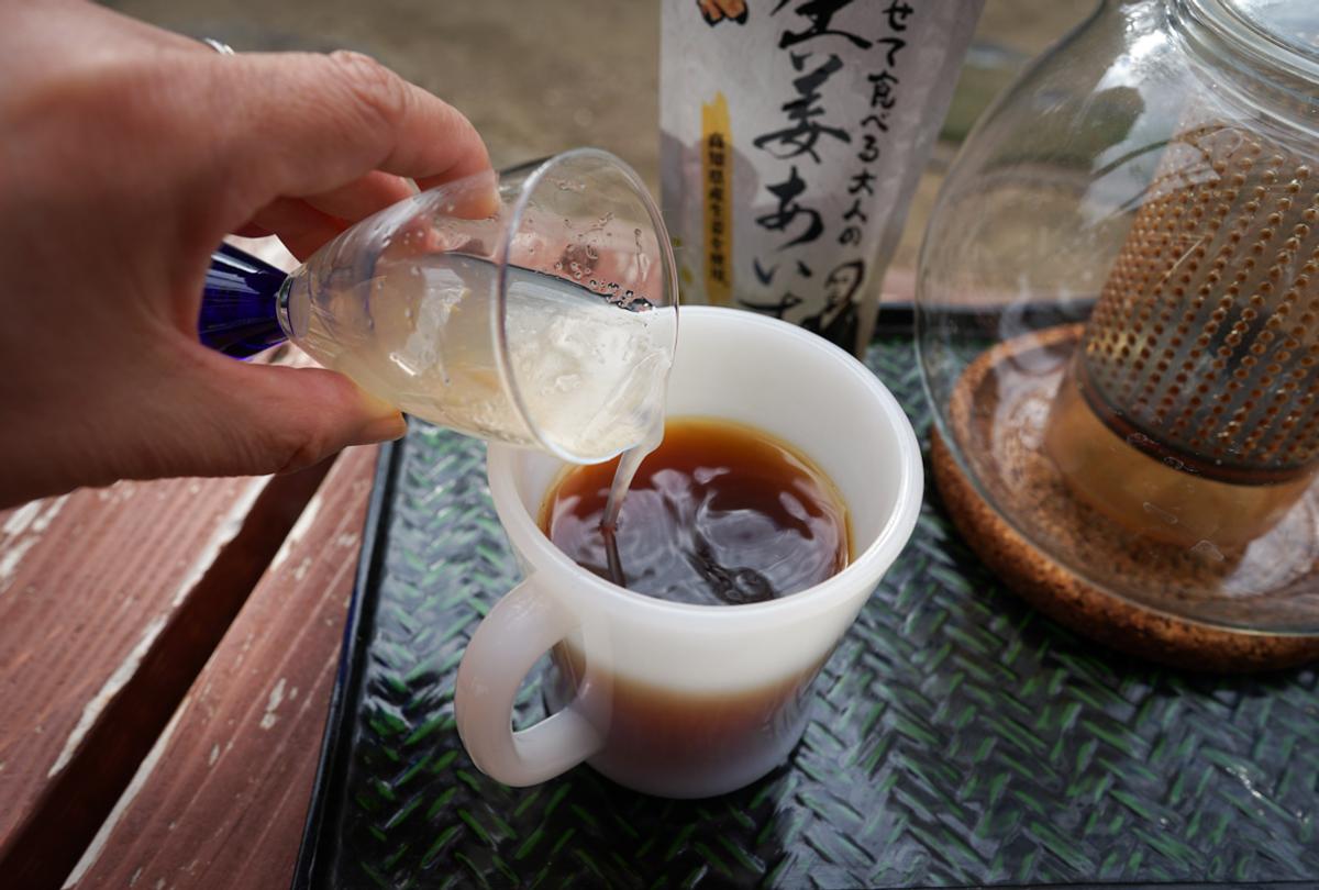 通常、「あいす」という名前が入るとシロップのように甘い味を想像しますが、これはがっつり生姜で甘さが控えめなので、お酒の味を邪魔しません。