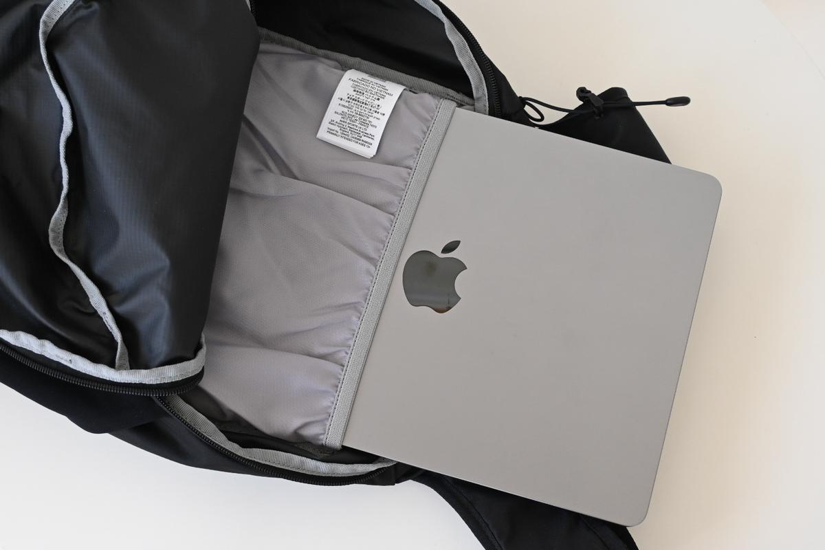 背中側にはPCが入るスリーブが付いていて、ここに13インチのMacBookがジャストフィット。
