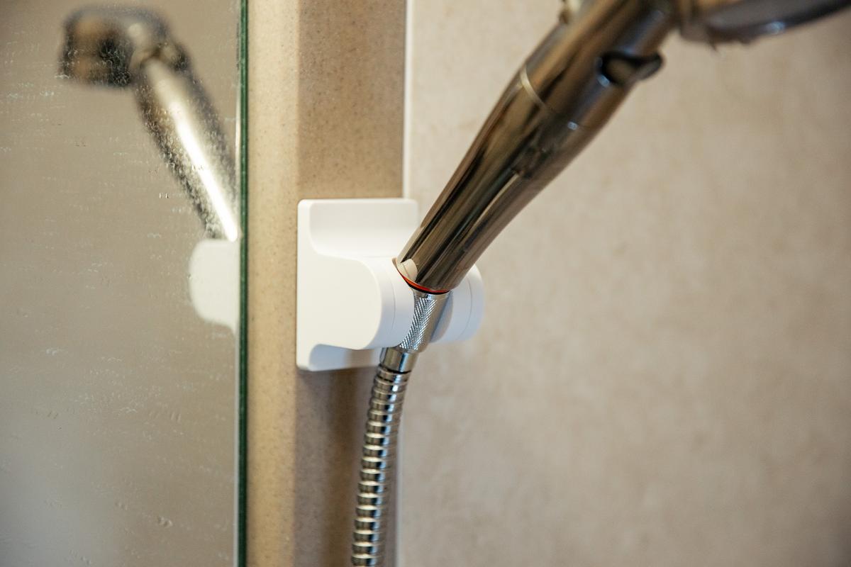 さも元からここにあったかのようになじんでくれていますね。ちなみに直径1.8cmまでのシャワーホースに対応しているとのこと。