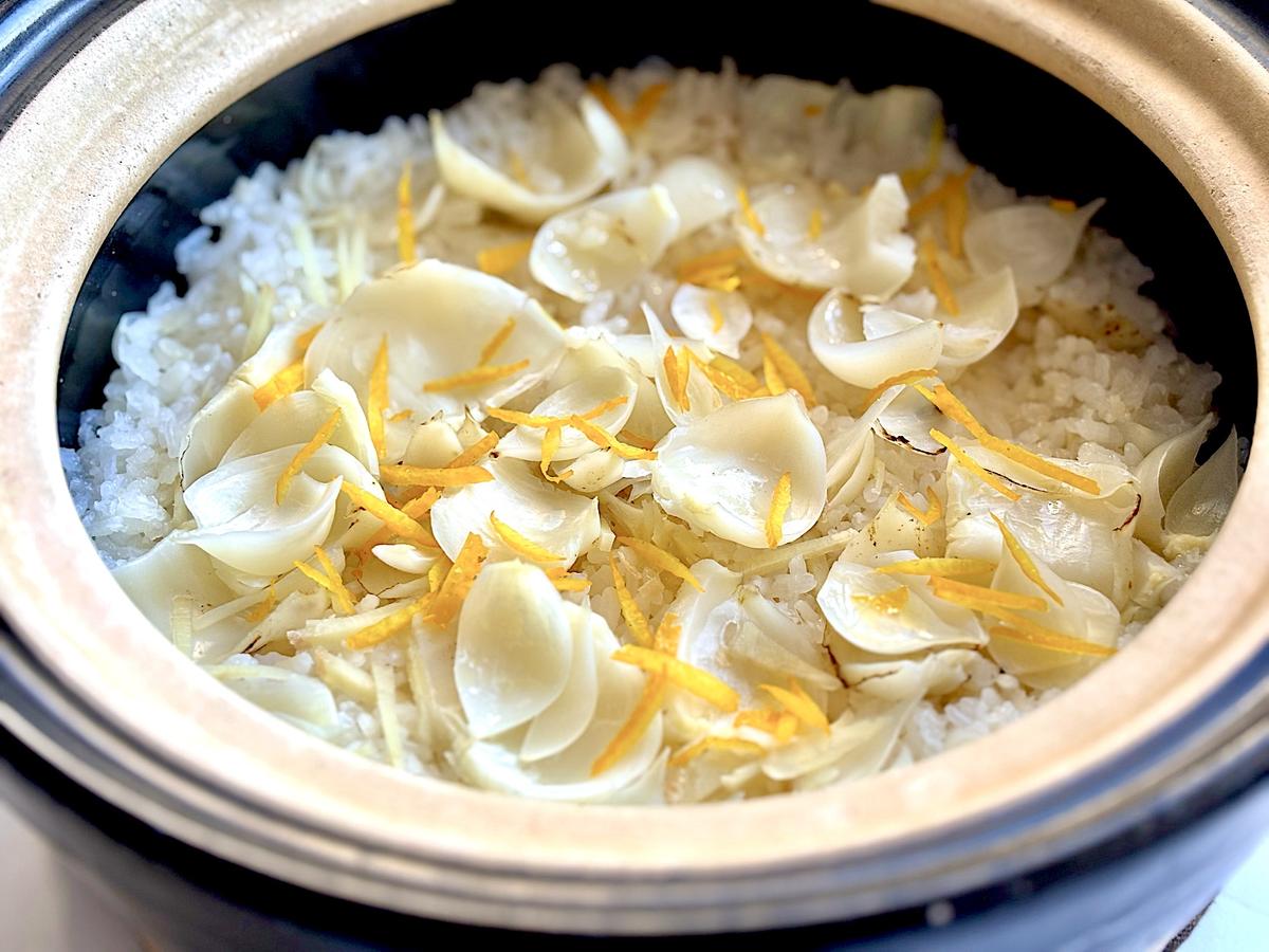 5. 炊き上がったら、千切りにした柚子の皮をちらす。