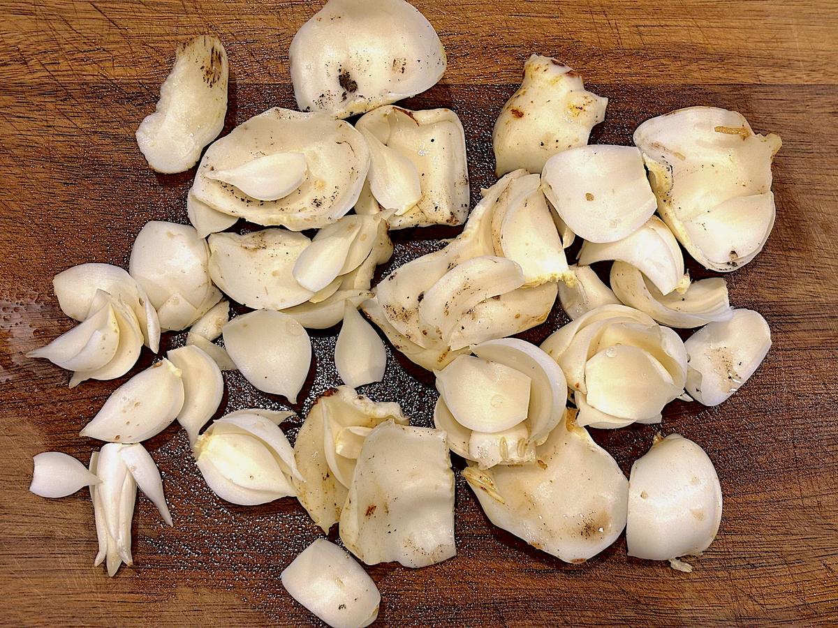 2. 百合根は洗っておがくずを落とし、1枚ずつ外し、土がついている部分はよく洗う。