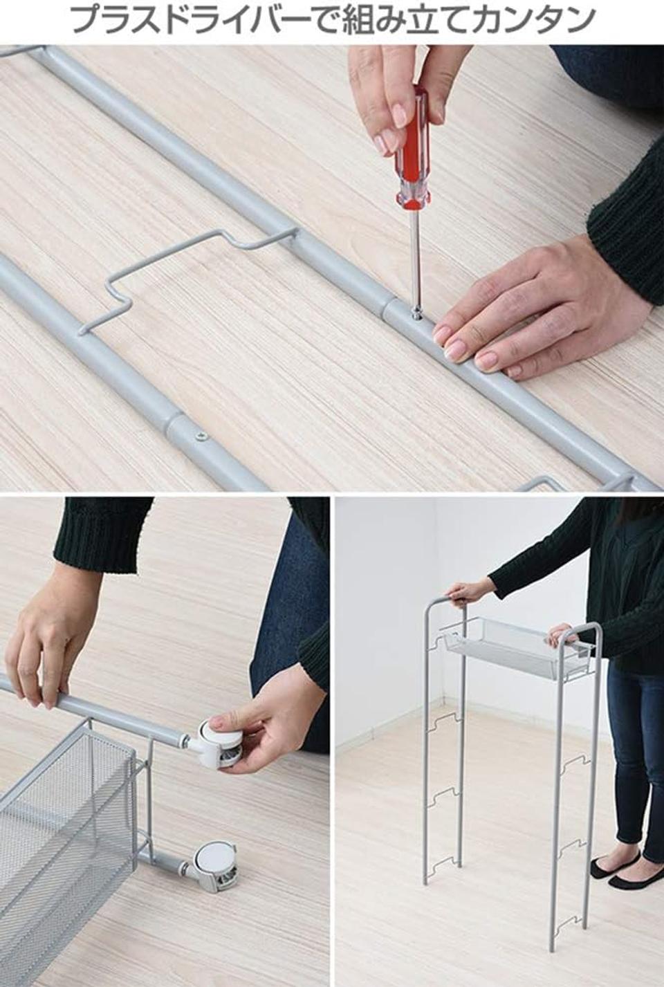 横幅が約19cmと絶妙なサイズ感が特長。冷蔵庫の横や洗濯機の間、デスクの脇にあるちょっとした隙間に収まります。