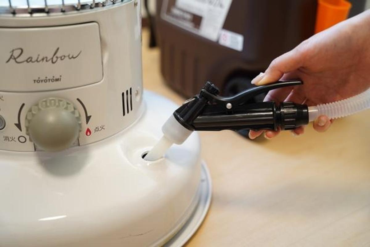 タンク一体型なので、カートリッジ式のようにタンクだけ外すことができません。本体ごと給油場所まで運ぶか、ポリタンクを部屋に持ち込む必要があります。