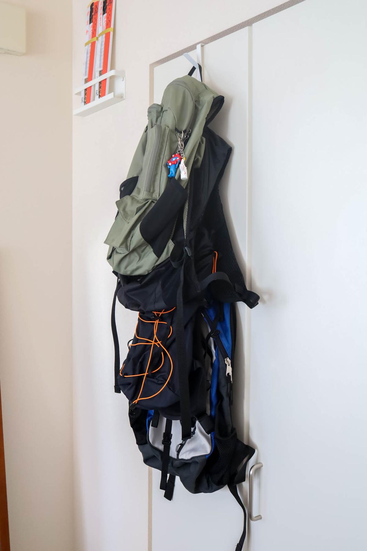 山崎実業の「ドアに引っ掛けるだけのこれ」で、置きっぱなしにしがちなリュックを毎回片付けられるようになった