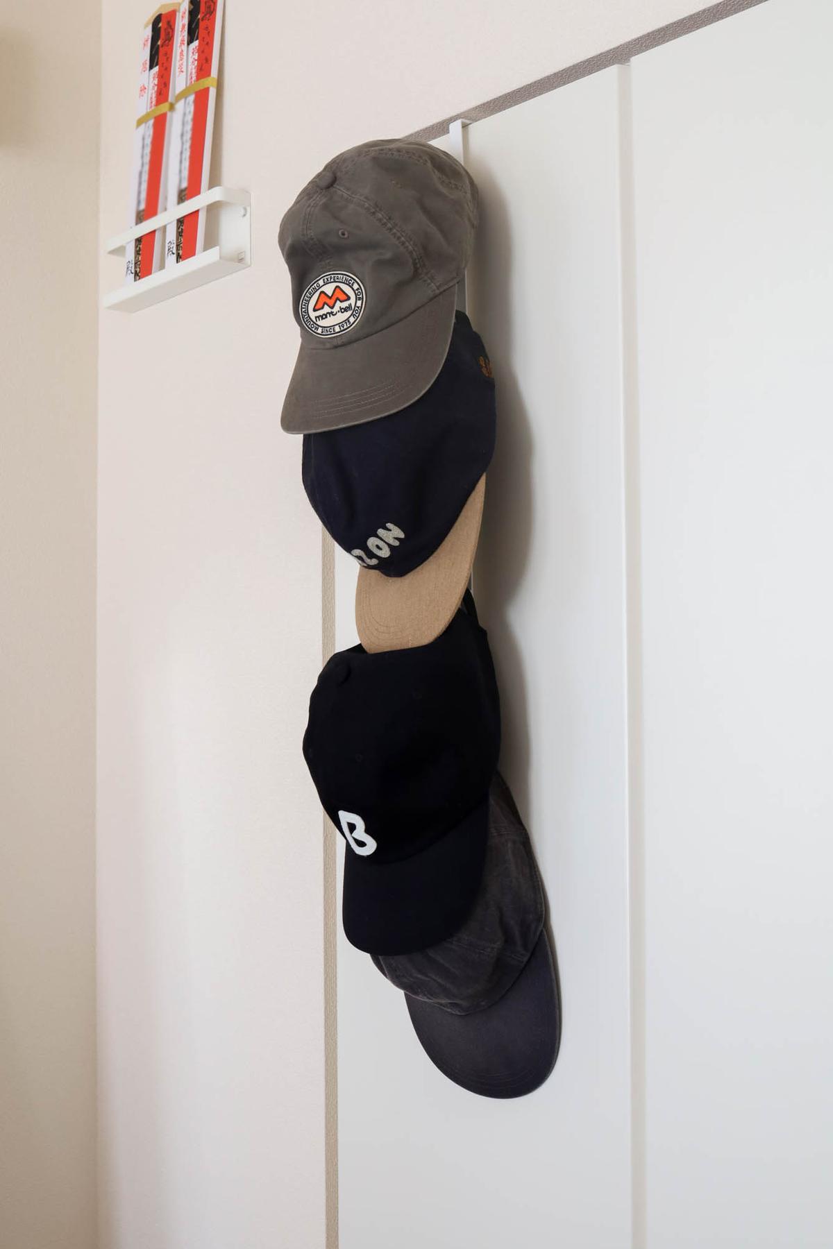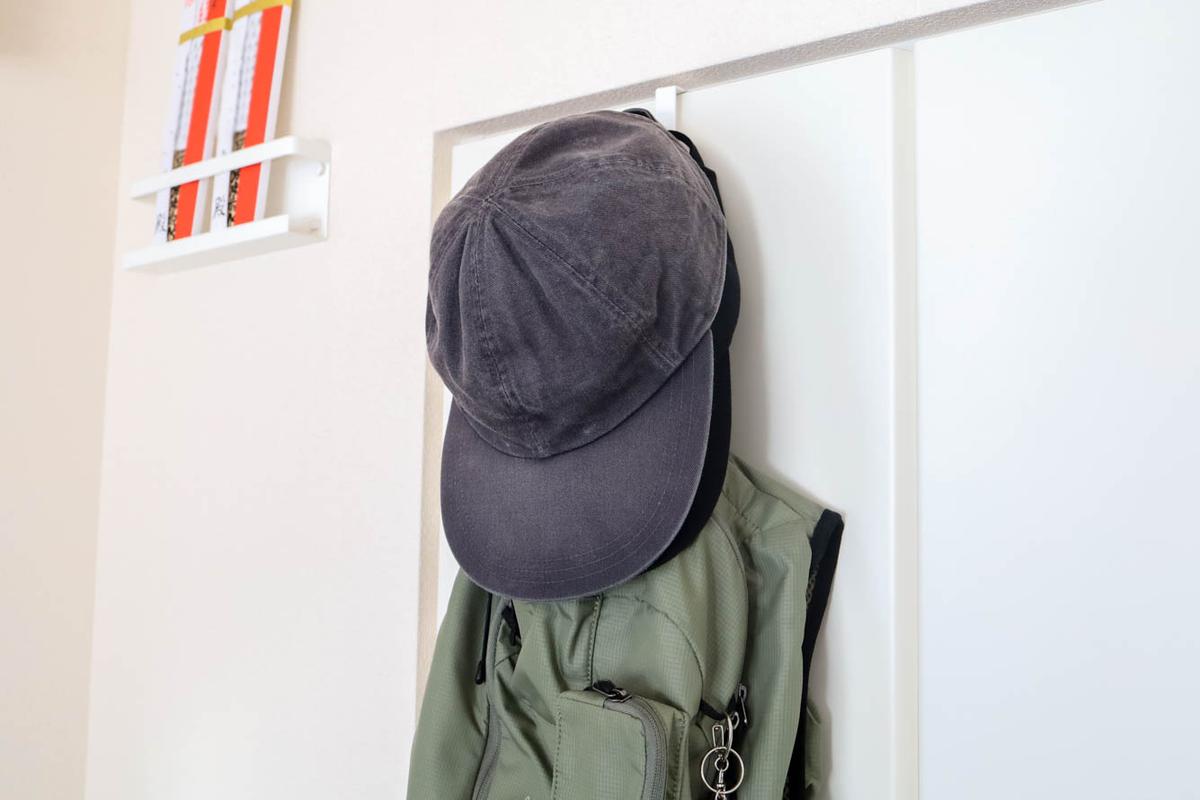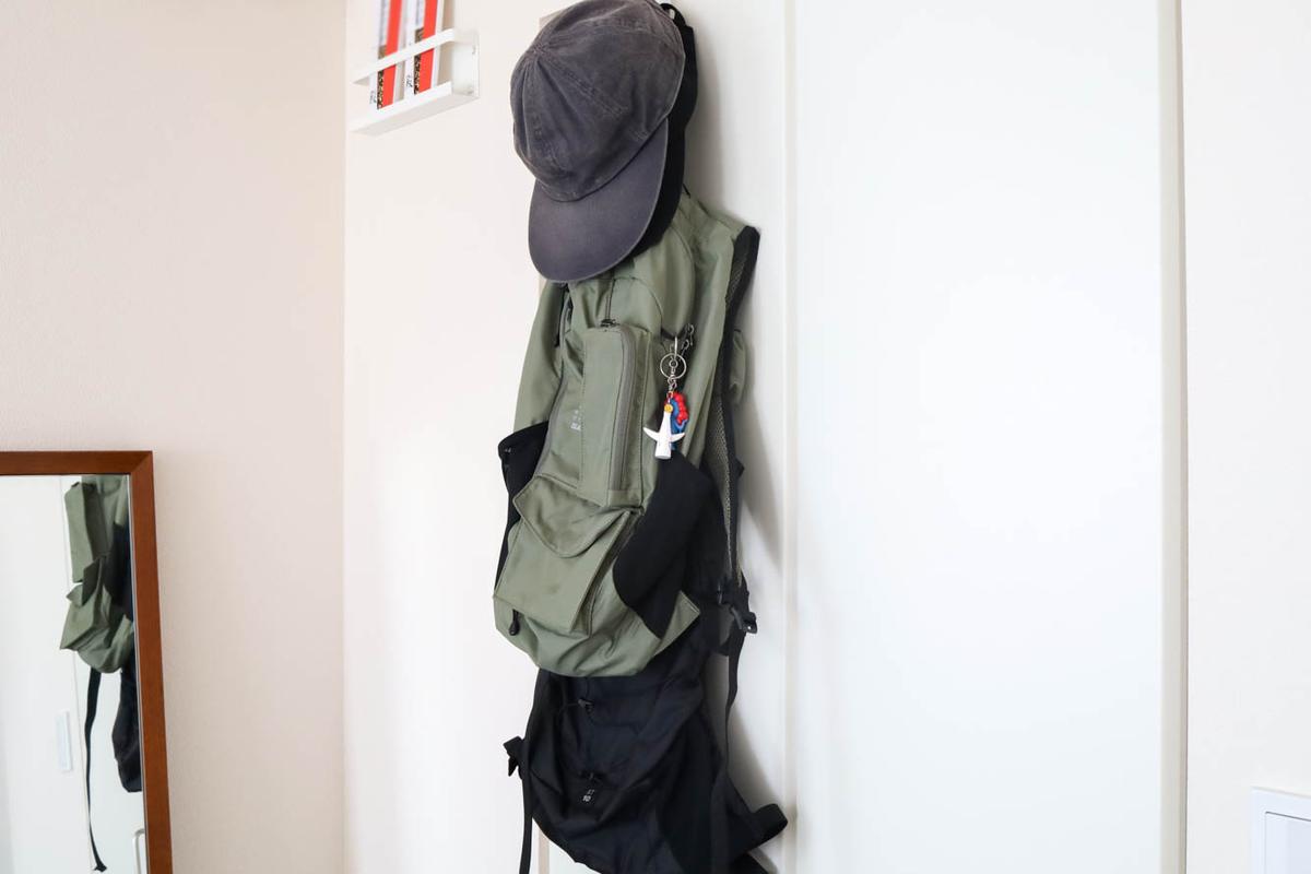 わが家では私と夫のよく使うリュックをひとつずつと、これまた収納に困っていた帽子をかけておくスタイルで落ち着きました。