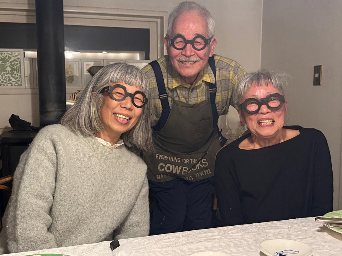 ゲストのお二人はお酒飲まず。飲んだのは赤い顔した我々2人。料理類もそれなりに美味しく(少し謙遜気味に表現)、おしゃべりも楽しく、夜が更けていったのでした。全員、青森県立美術館でいただいた棟方志功のpaperメガネをかけて撮影しています。