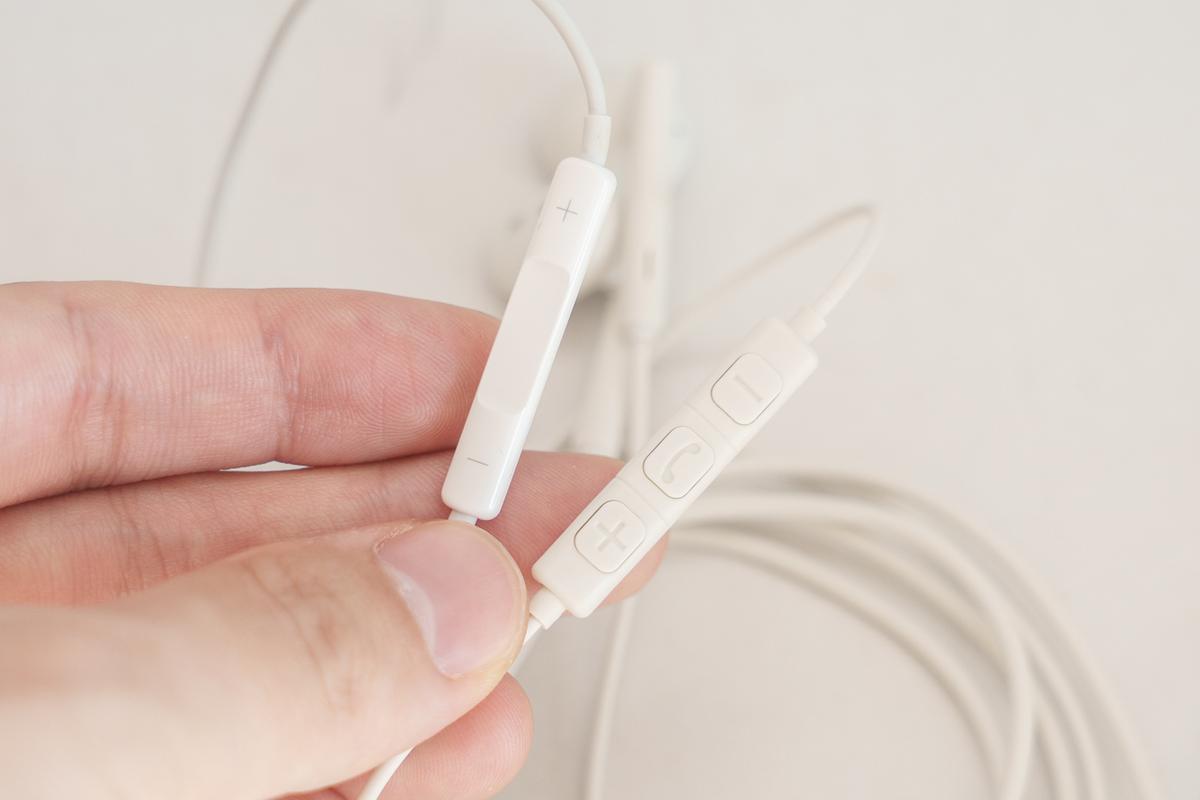 EarPodsは軽く触れるだけで操作でき、フィードバックも心地よい仕上がり。対して、無印イヤホンはしっかり押し込むボタン式です。