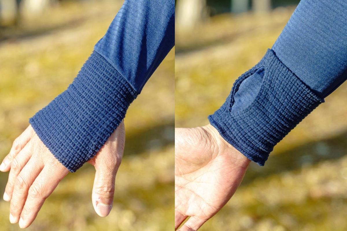 トップスは首元から手首までしっかりカバーしてくれる設計で、親指を通せるサムホール付き。これが意外と効きます。