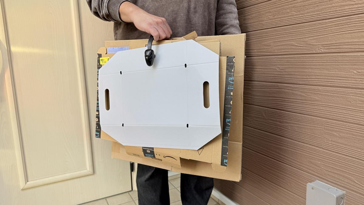 まとめられるダンボールの枚数は、最大8〜10枚程度。体感としては、薄めのダンボールなら11〜12枚ほどいけそう。一定量たまったら、そのまま紐で縛れる構造なので、「溜めすぎない」習慣も自然と身につきました。