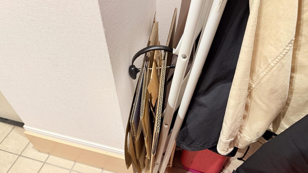 ダンボールって、畳んであっても意外とかさばるうえ、サイズもバラバラ。そのまま無理やり立てかけておくと、いつの間にか倒れて散乱していたりして、回収日までのダンボール管理って地味に厄介でした。
