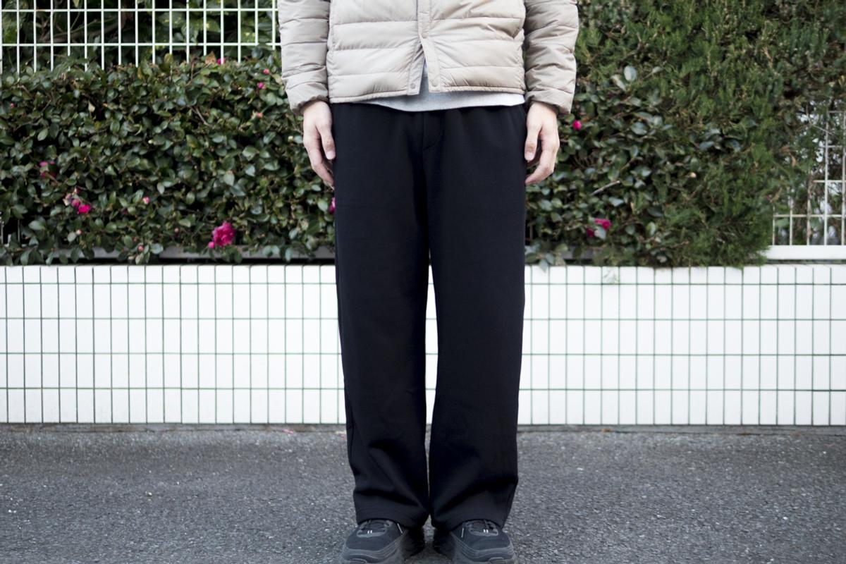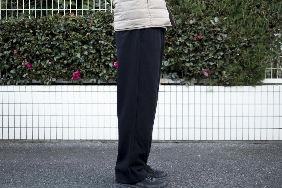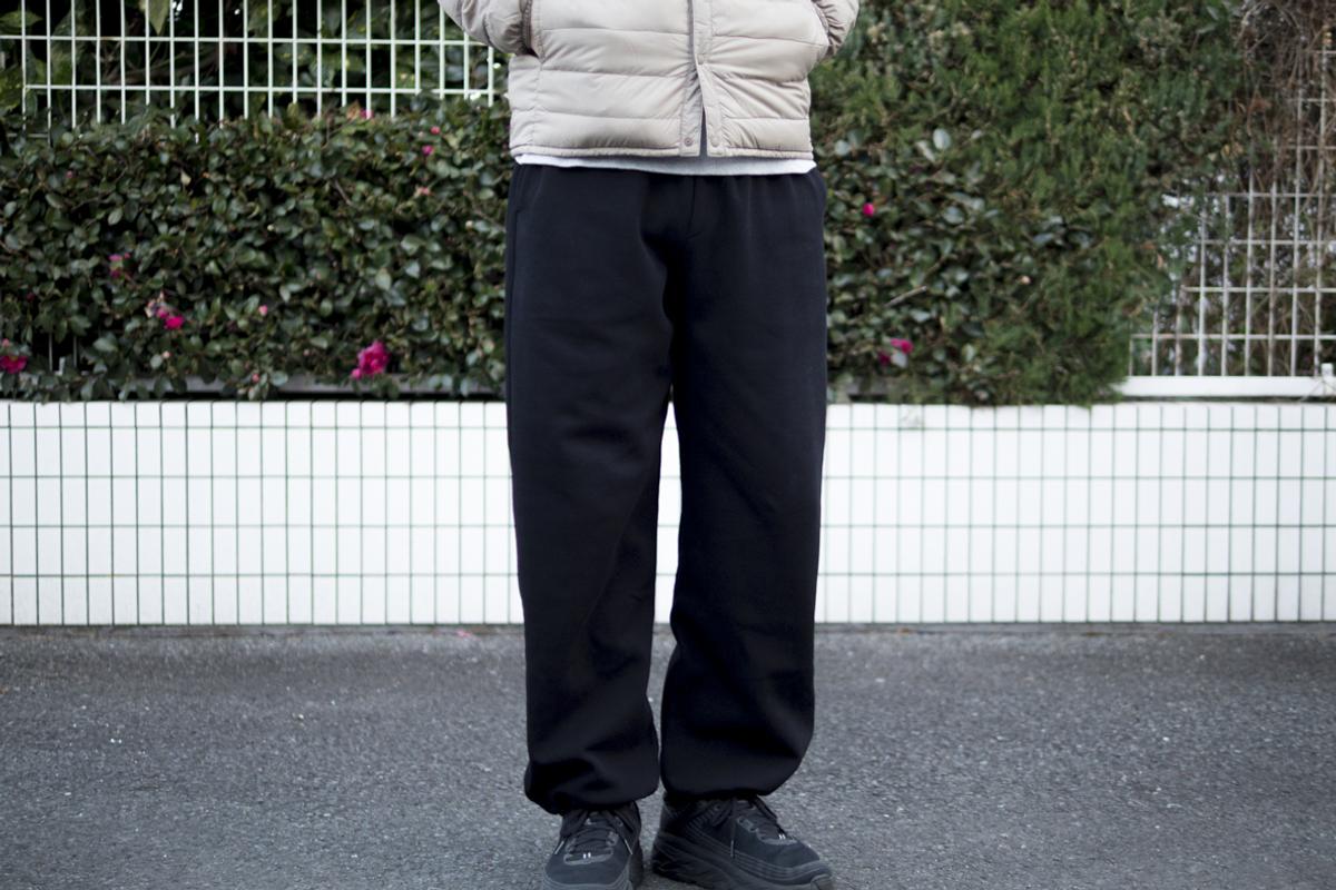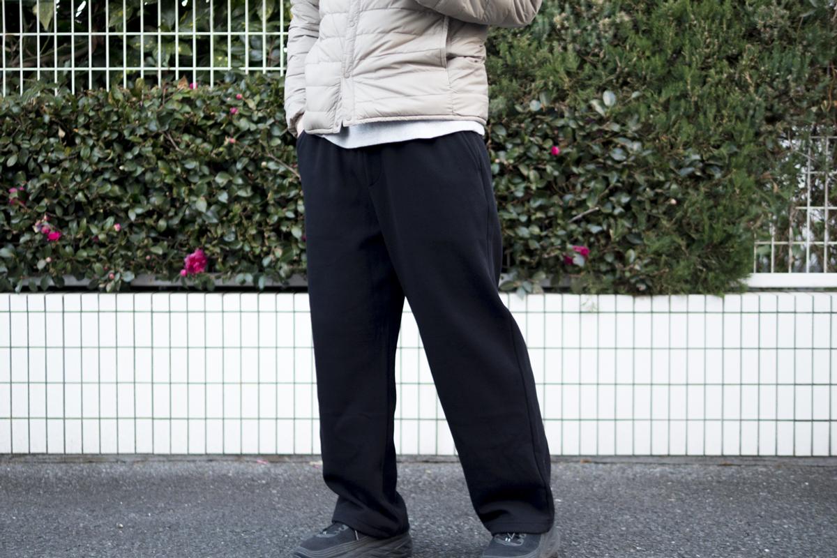 こういったスウェットパンツらしいラクな仕様は残しつつ、生地の質感とシルエットで綺麗な印象になっている。