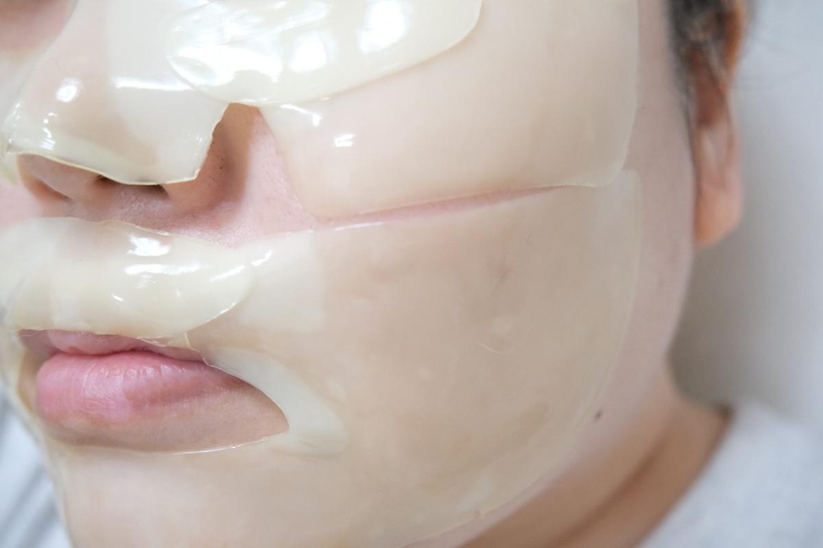 一般的な不織布のシートマスクではなく、美容成分をたっぷり含んだゲル状のシートが肌に密着し、貼ったまま過ごせるのが特長。