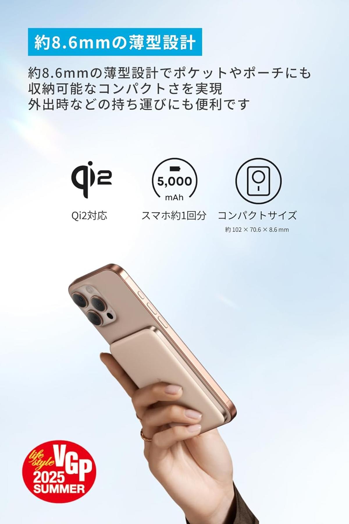 Anker史上最薄クラス、厚さ8.6mmとバツグンの携帯性を実現。MagSafe対応モバイルバッテリーが21%オフで過去最安値!