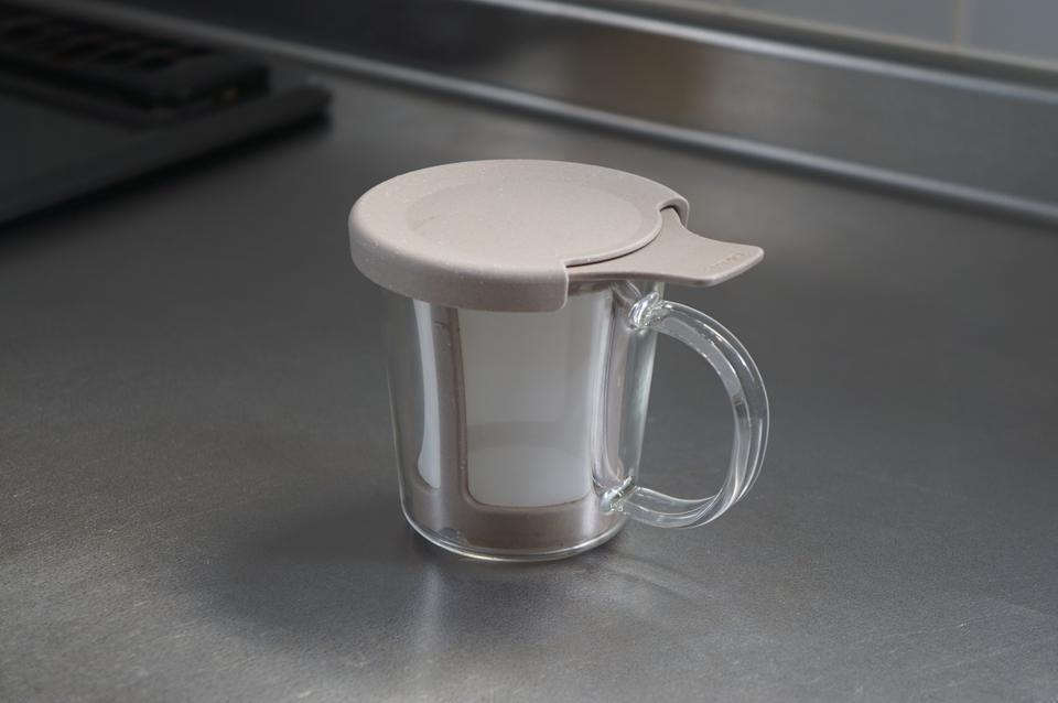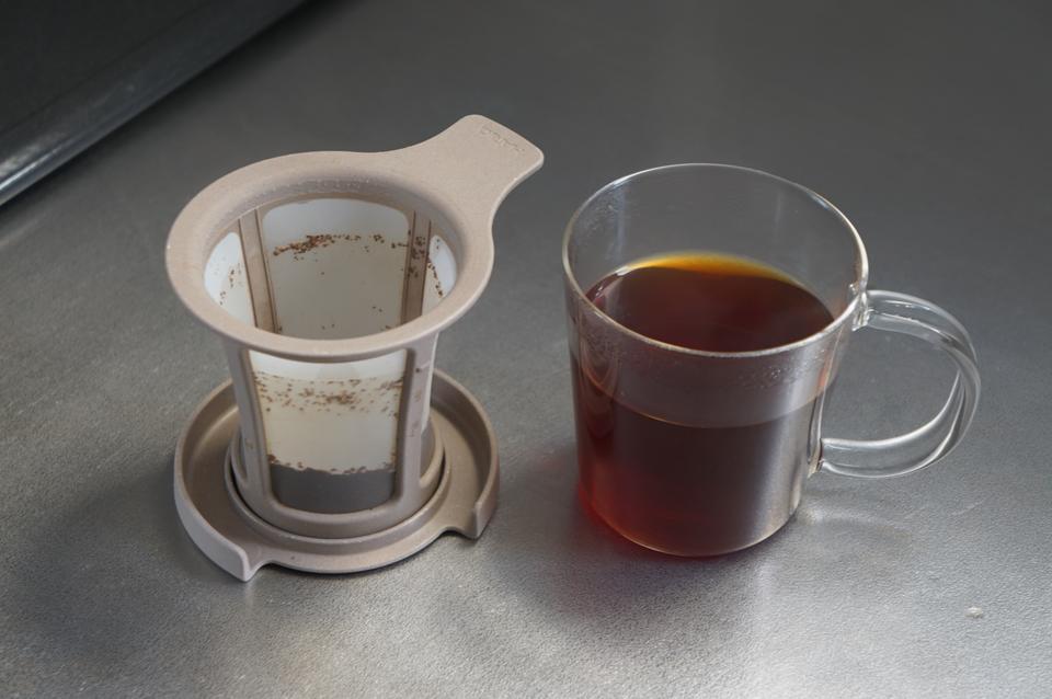 粉や茶葉を入れた茶漉し&カップにお湯を注ぐだけで、1杯分のホットドリンクがサクッとできちゃいます。網の目が細かいので粉や茶葉がドリンクの中に侵入してくることもなく、味にも影響なし。