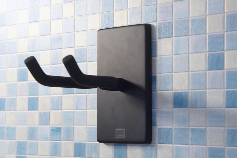 石膏ボードの壁に細い虫ピンをコインで打ち込んで設置するホルダーなのですが、傷が最小限済むので(画鋲より目立ちにくいレベル)、賃貸のおうちでも使えます。