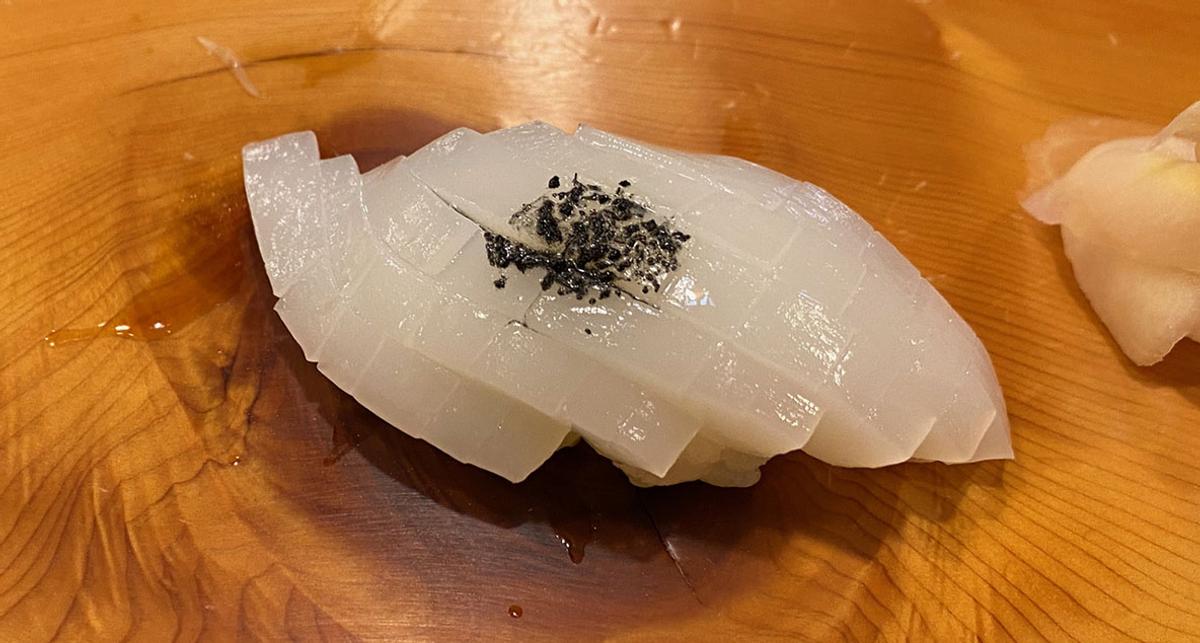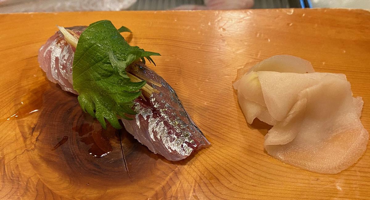 お造り、卵焼き、コハダ、アジ、アオリイカ、アオヤギ(これ、写真がすごいピンボケ)。申し訳ない。ここでストップさせていただきました。お吸い物。でも飲み物の隙間あり。日本酒「日高見」&「加賀鳶」を飲む。