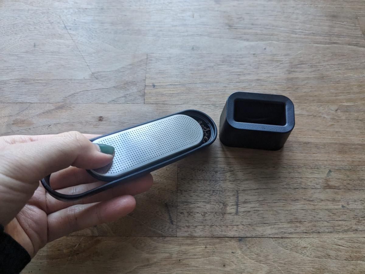 ストレーナーの部分をスライドして茶葉をすくい、再度スライドして閉めるだけで1人分の茶葉がすくえます。